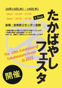 10/15(水)、16(木)に弊社隣接の【安来鉄工センター】にて弊社主催の展示会『たかばやしフェスタ』を開催します!